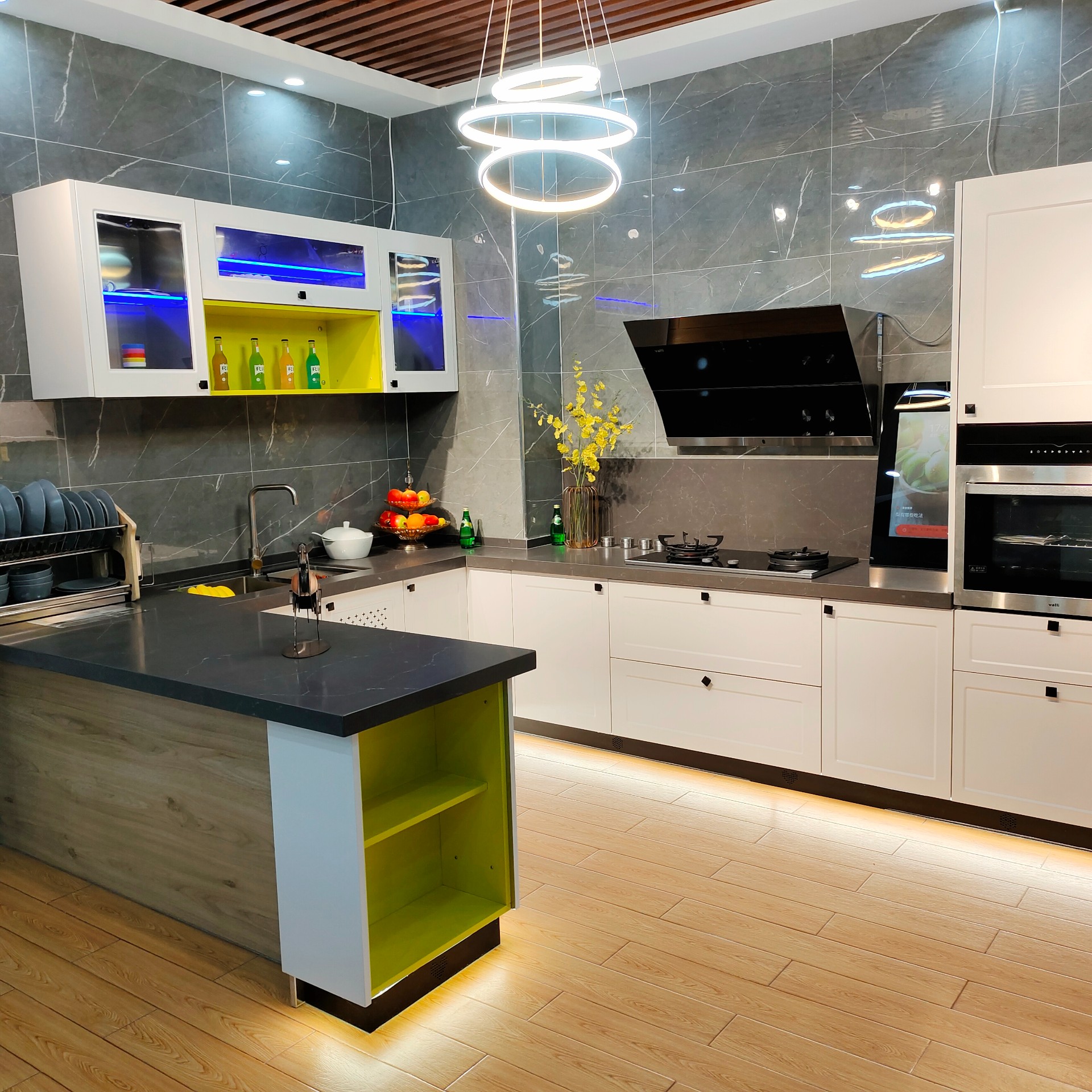 這是我們客戶家的櫥柜。門板采用的是市面上一直流行的啞光模壓系列,優(yōu)點(diǎn)是整體效果好,無須封邊,一次成型,防水、耐磨、易擦洗,而且模壓通過門板的造型可設(shè)計(jì)出不同的裝修風(fēng)格